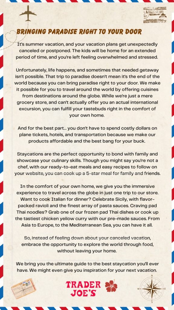 Unfortunately, life happens, and sometimes that needed getaway isn’t possible. That trip to paradise doesn’t mean it’s the end of the world because you can bring paradise right to your door. We make it possible for you to travel around the world by offering cuisines from destinations around the globe. While we’re just a mere grocery store, and can’t actually offer you an actual international excursion, you can fulfill your tastebuds right in the comfort of your own home.Â