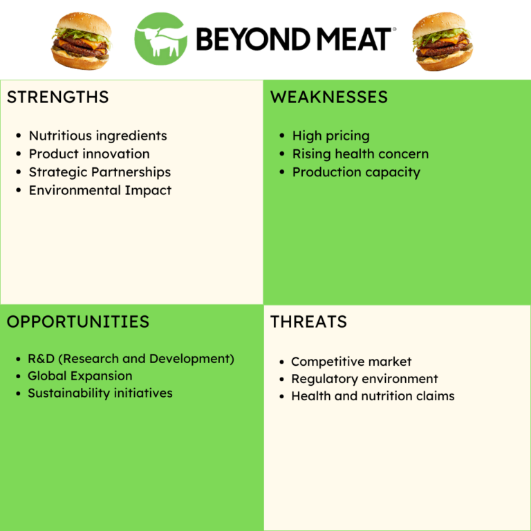 - High Pricing — Beyond Meat products tend to be more expensive compared to traditional meat-based products. The cost difference for consumers can be a weakness, especially for those who might not find it affordable.