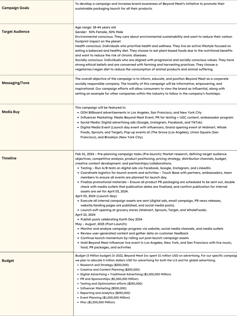 Beyond Meat: Sustainable Packaging initiative following Earth Day 2024.